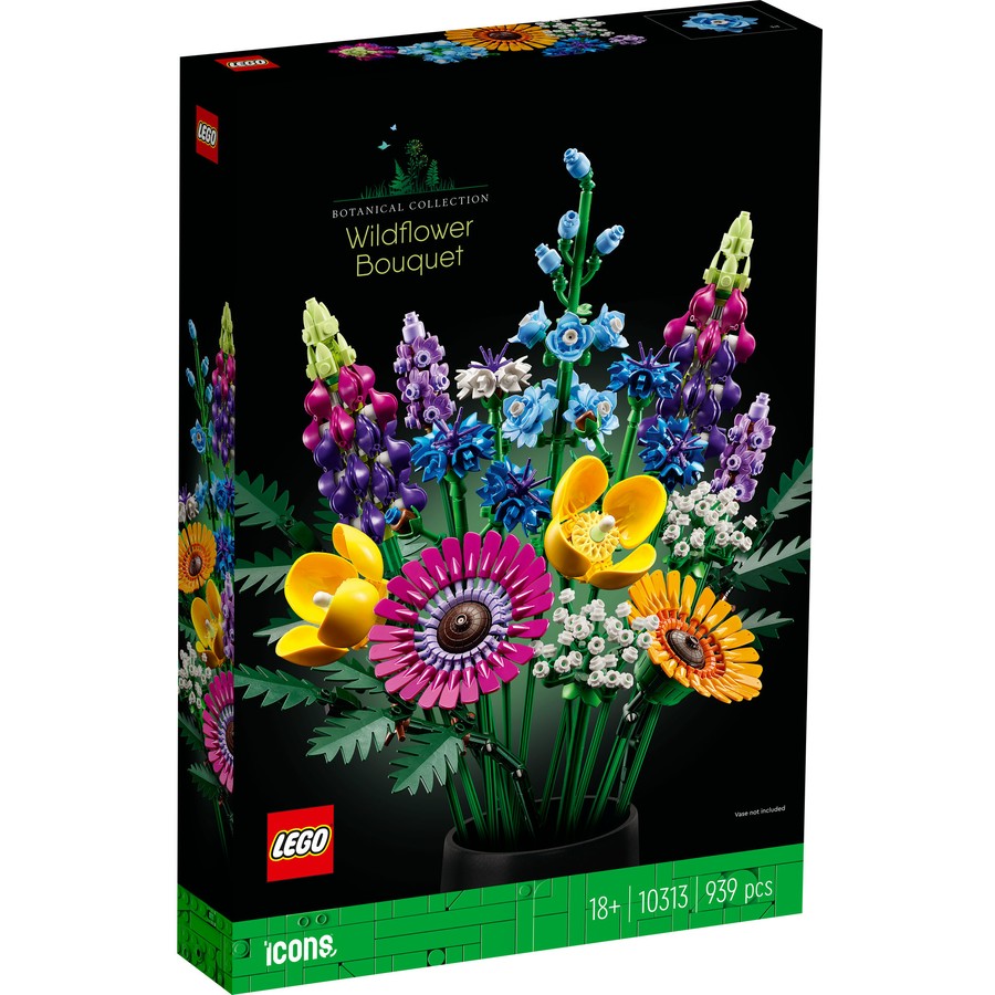Giving and receiving flowers is always joyful, and this LEGO® Icons Wildflower Bouquet (10313) puts a creative spin on a timeless gift. Why not celebrate the next special occasion by sending a loved one flowers that will never wither or need to be watered?Let creativity bloomCrafted entirely from intricate LEGO pieces, the Wildflower Bouquet features 8 species of wildflowers on adjustable stems. Budding florists and flower lovers can spend hours building and identifying the blooms inspired by cornflowers, lavender, Welsh poppies, cow parsley, leatherleaf ferns, gerbera daisies, larkspur and lupins. Once complete, these LEGO flowers can be displayed in a favorite vase to become an eye-catching piece of home decor that will plant seeds of joy in whichever room they’re placed.