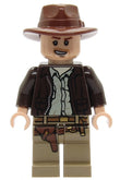 The Indiana Jones minifigure portrays the iconic archaeologist and adventurer, characterized by his signature hat and whip.