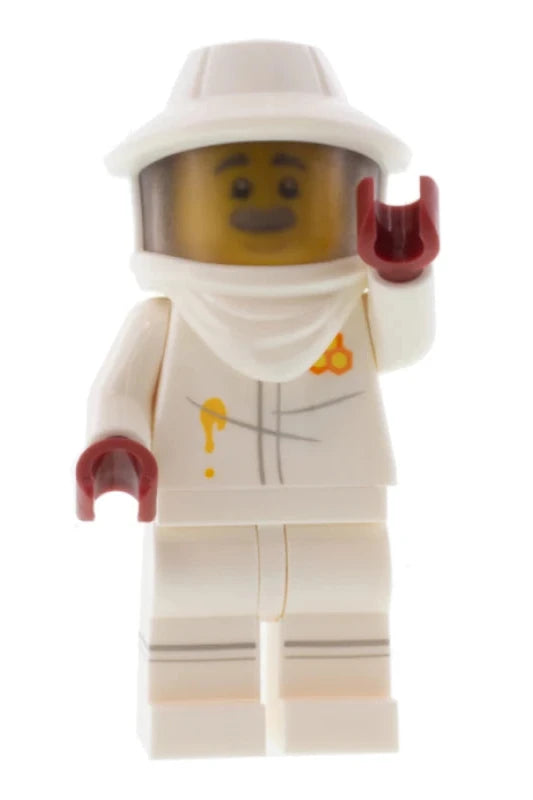 Beekeeper is a character from the Collectable Minifigures Series 21, representing a person involved in the maintenance of bee colonies and honey production.