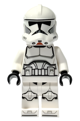 The Clone Trooper (Phase 2) is a soldier from the Grand Army of the Republic in Star Wars, equipped with advanced armor and a nougat-colored head.