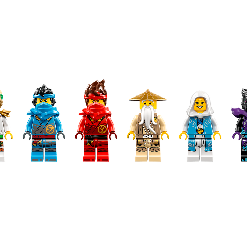 This buildable model comes with 6 NINJAGO character minifigures: Master Lloyd with a staff accessory, Master Wu with a spear accessory, Nya with 2 katana sword accessories and a pair of ninja sai, Kai with 2 katana sword accessories and a sword accessory, Euphrasia with a staff accessory and Lord Ras with his hammer. Kids have all they need to play out exciting ninja battles.