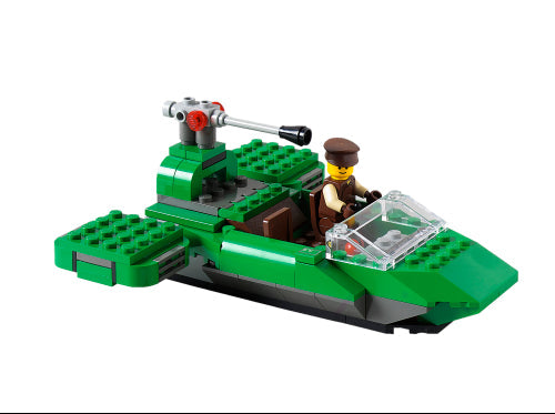 It's a high-speed chase in the Flash speeder! Hop behind the controls of the Flash speeder with the Royal Naboo Security forces. It's built for speed to keep the city streets safe! Outfitted with a pursuit/defense blaster.