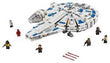 Travel with Han Solo, Chewbacca and their friends with the LEGO® Star Wars Kessel Run Millennium Falcon. This LEGO brick version of the iconic Corellian freighter from the Han Solo movie features a 2-minifigure cockpit with detachable canopy, 2 spring-loaded shooters, sensor dish, ramp, rotating top and bottom laser turrets with 2 gunner seats, plus a detachable escape craft.
