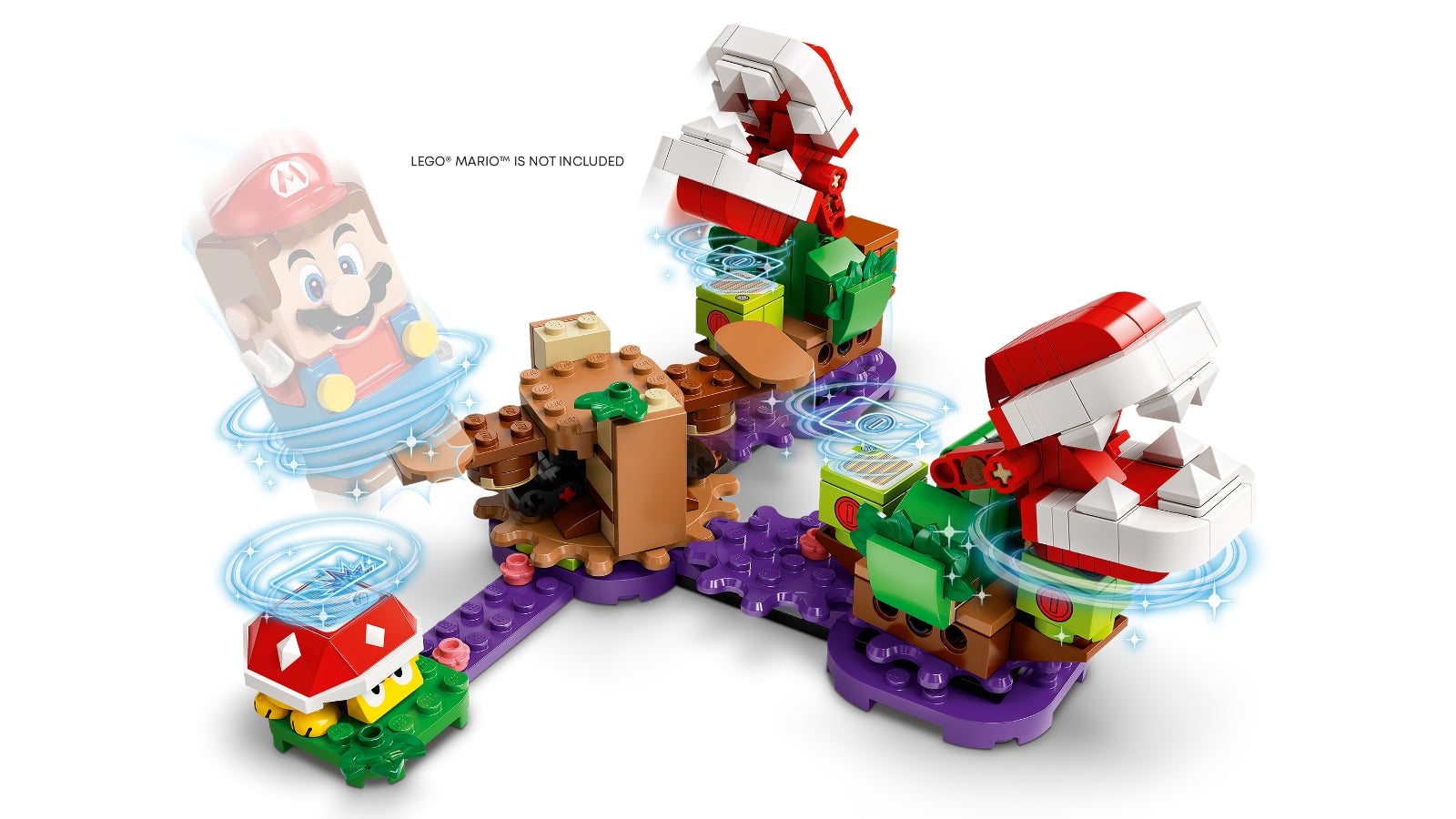 Kids can create spinning, jumping challenges in a brick-built, poisonous Soda Jungle to add to their LEGO® Super Mario™ Starter Course with this Piranha Plant Puzzling Challenge Expansion Set (71382).