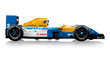 The LEGO Icons Williams FW14B features working steering, w ide rear slick tires with printed Goodyear lettering and a detailed engine, plus a display stand with vehicle details and stats. The Nigel Mansell minifigure comes with a helmet and a podium-style display stand featuring a photo and a quote from the legendary driver.